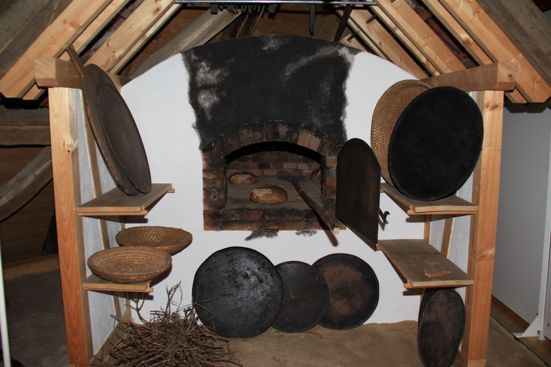 Im Dachgeschoß befinden sich Gerätschaften zur Teigbereitung und zum Brotbacken. Zusätzlich macht ein nachgebautes Backhaus deutlich, wie das Brotbacken bis in die heutige Zeit hinein in unterfränkischen Dörfern lebendig ist. Alte Küchengerätschaften zeigen, wie vielfältig früher Mehl und Getreide im Haushalt Verwendung fanden. Wie man Brot und Mehl über Wochen hinweg aufbewahrte, veranschaulicht eine bäuerliche Vorratskammer.